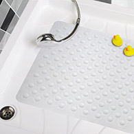 Rubberen anti-slip bad- en douchematten: Deze rubberen anti-slip matten hebben de hoogste kwaliteit. Het rubber is van nature reeds anti-slip en samen met de sterke zuignappen aan de onderzijde wordt het uitglijden tot een minimum beperkt. Zeer geschikt voor oudere mensen en kinderen.
